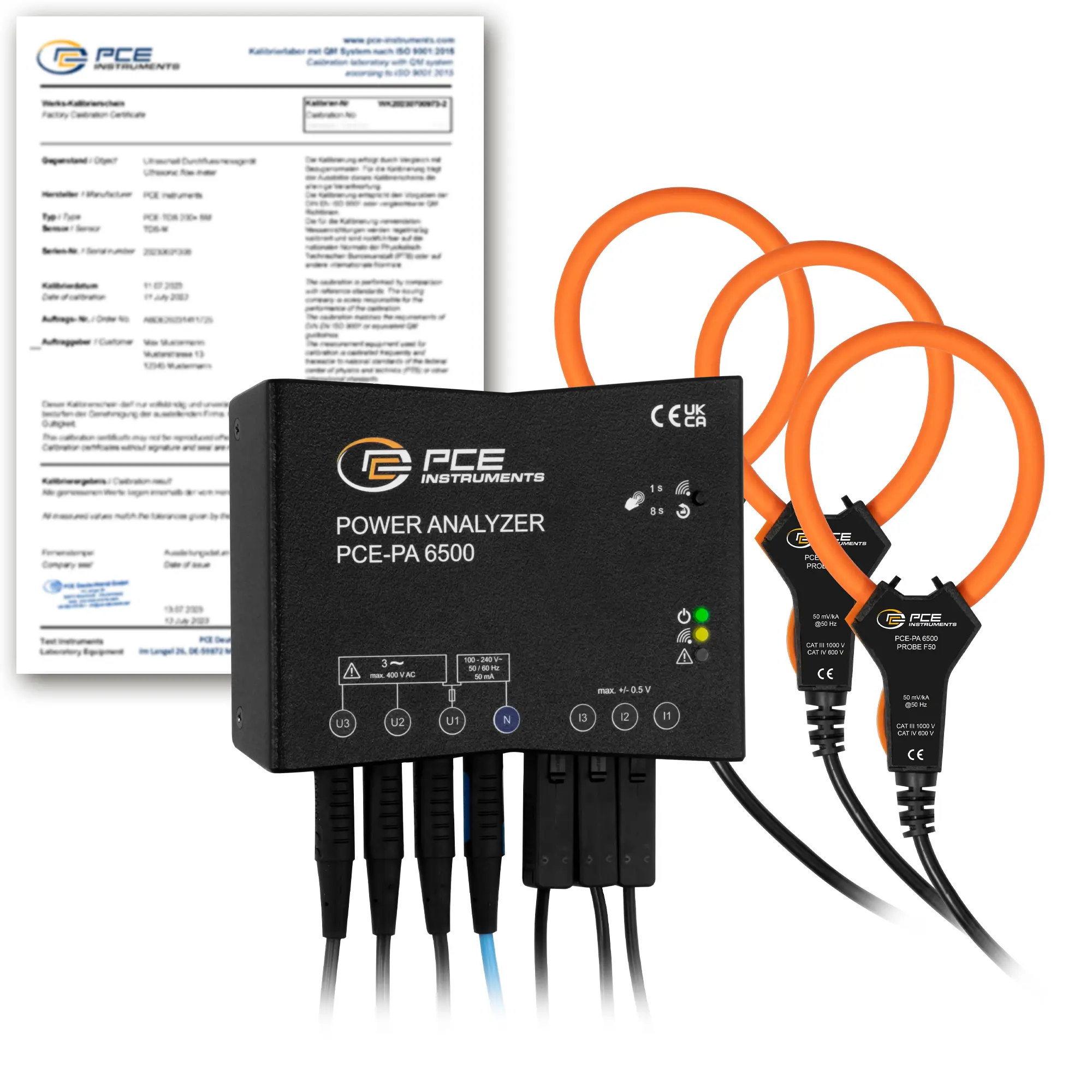 3-Phase Power Meter / 3-Phase Power Analyzer PCE-PA 6500 F50-ICA incl. ISO-Calibration Certificate