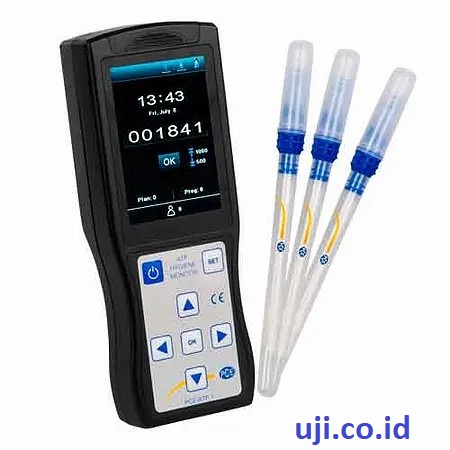 Alat ini digunakan untuk menguji tingkat kebersihan permukaan dengan mendeteksi residu organik dan aktivitas mikrobiologis melalui metode ATP bioluminesensi secara cepat dan kuantitatif. -