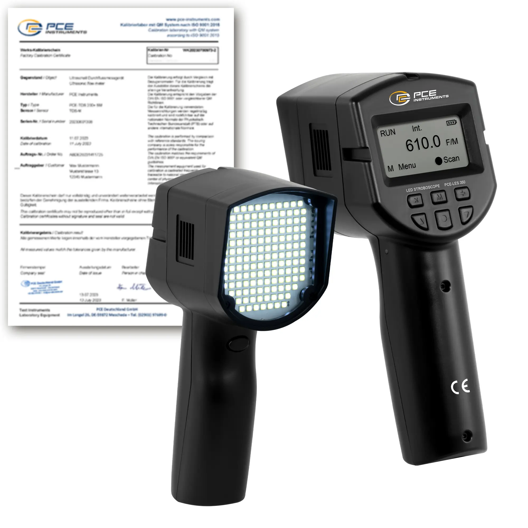 PCE-LES 350-ICA Automotive Tester / Stroboscope dengan 144 LED & Sertifikat Kalibrasi ISO. Alat ukur presisi untuk analisis gerakan cepat di industri otomotif dan manufaktur. Akurasi 0.01%, rentang 50-12000 FPM, dan sertifikat kalibrasi untuk jaminan hasil pengukuran yang terpercaya.