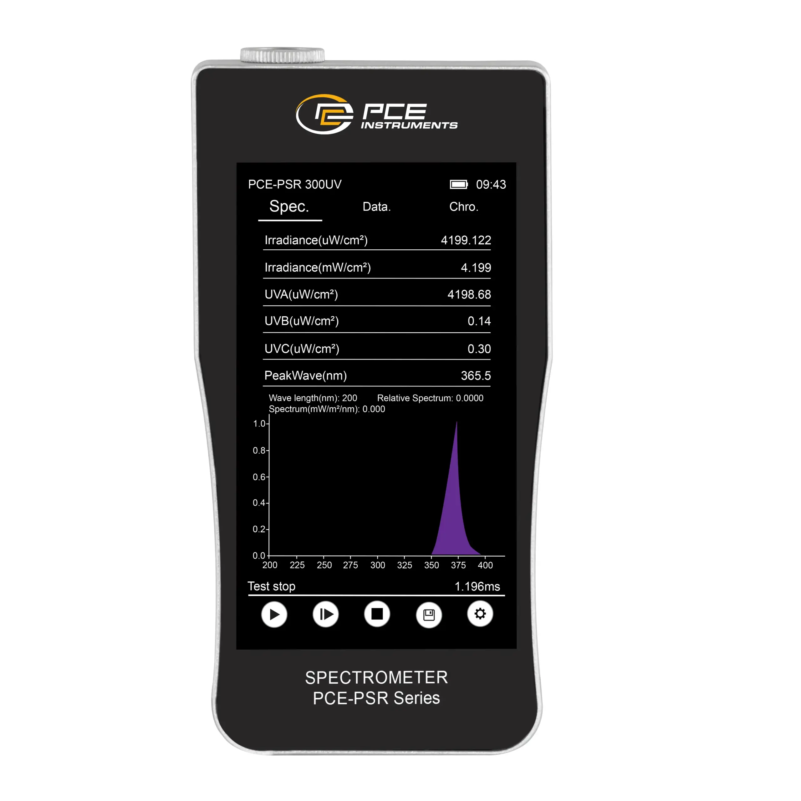 - Ini alat apa? Chroma Meter PCE-PSR 300UV adalah sebuah alat ukur atau meter presisi tinggi yang berfungsi sebagai penganalisa spektrum cahaya dan radiasi ultraviolet. Alat ini menggabungkan kemampuan pengukur intensitas UV, analisis Color Rendering Index (CRI), pencatatan koordinat warna, dan pengukuran iluminansi dalam satu perangkat yang kompak dan canggih.