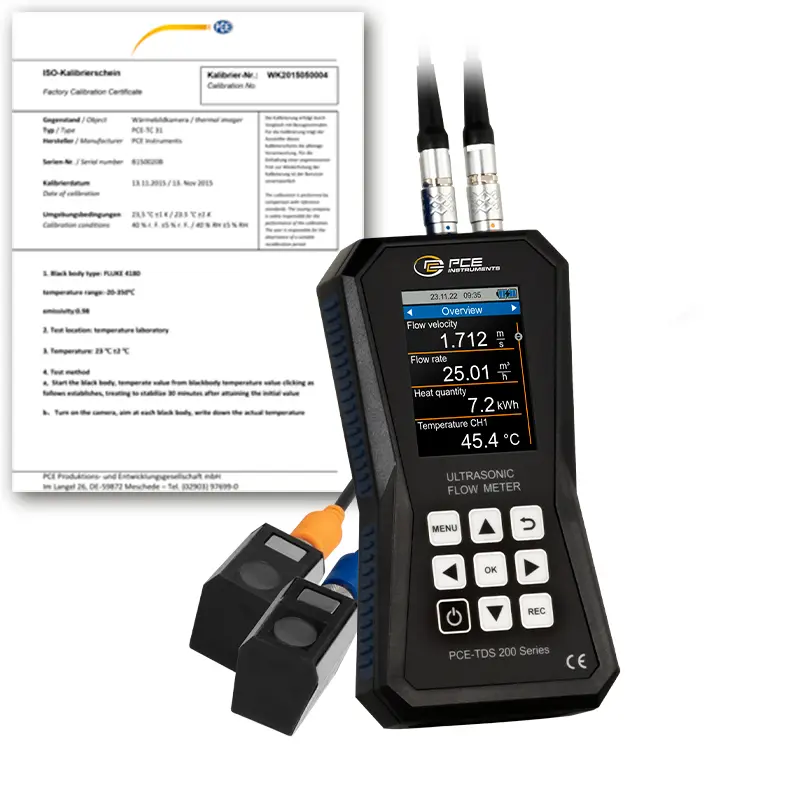 Clamp-on Ultrasonic Flow Meter PCE-TDS 200 S-ICA incl. ISO-Calibration Certificate