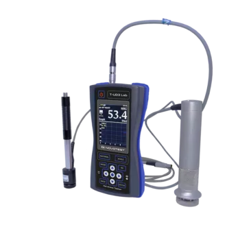 - Fleksibilitas Pengukuran Tak Tertandingi: Ganti antara probe Ultrasonic Contact Impedance (UCI) untuk jejak kecil dan permukaan keras, dengan probe Leeb dinamis untuk permukaan kasar, tanpa perlu mematikan alat. Satu unit untuk beragam aplikasi, dari leher poros yang dipoles hingga produk masif.