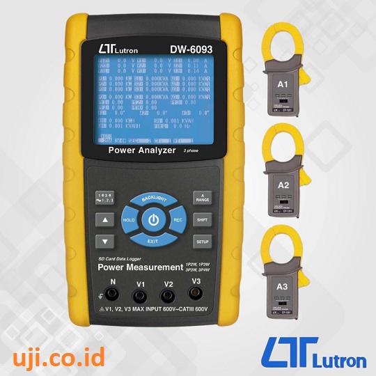 LUTRON DW-6093 digunakan untuk mengukur dan menganalisis parameter listrik pada sistem 1 fase dan 3 fase, termasuk tegangan, arus, daya aktif, daya reaktif, daya semu, faktor daya, dan frekuensi.